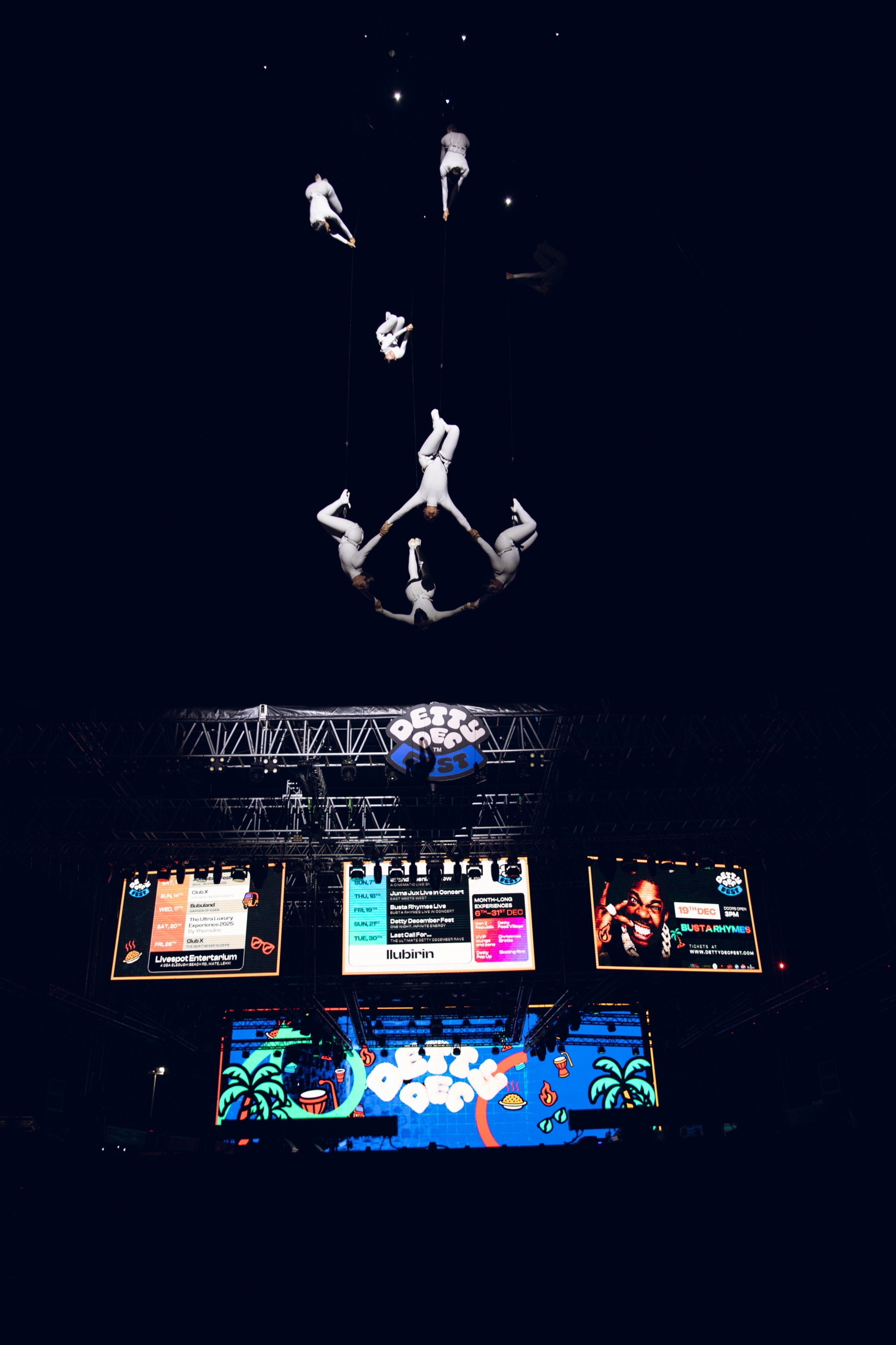 The festival combined global headliners with culturally rooted performances. Highlights included: Headline performances from Juma Jux, Gunna, and Busta Rhymes Detty December Fest X Gunna Live in Concert, the first African stop of the Gunna Wun World Tour Juma Jux Live in Concert was Juma's first Live Concert in Nigeria A 40-man choir, live bands, and 200+ dancers shaping transitions and stage choreography Aerial ballerinas and aerial drummers introducing vertical spectacle